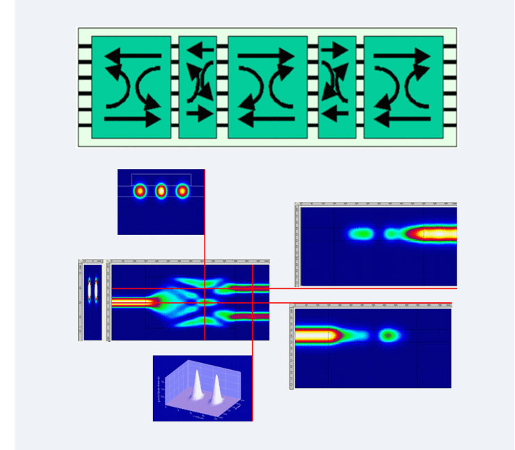 사용하기 쉽고 빠른 FimmProp는 MIMI Coupler, Mode Coupler, Codirectional Coupler와 같은 복잡한 구조들을 디자인하기 위한