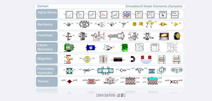 SimulationX의 기본 모듈은 통합 멀티 시스템 디자인, 모델링 및 분석을 위한 플랫폼에 필수적인 부분입니다. 프로그램을 실행하면 좌측에 프로그램에서 기본적으로 제공하는 라이브러리와 사용자의 선택에 의해 설치된 라이브러리, 그리고 사용자가 직접만든 라이브러리 리스트가 있습니다. 통합된 TypeDesigner는 기존의 라이브러리를 변경하거나 자신만의 모델 라이브러리를 만드는 기능을 가지고 있습니다. 이것은 또한 Modelica라는 언어를 기반으로 하는 'Modelica Smart Editor' 로도 사용됩니다.