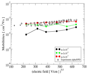 이 적용 사례는 Nanomatch 소프트웨어 스택의 아주 기본적이지만 중요한 활용을 보여줍니다. 순수한 α-NPD와 ALQ3 층에서 대전 입자의 이동도를 계산하는데 Parameterizer, Deposit, QuantumPatch 및 AnaMobi mobility solver를 사용합니다.
